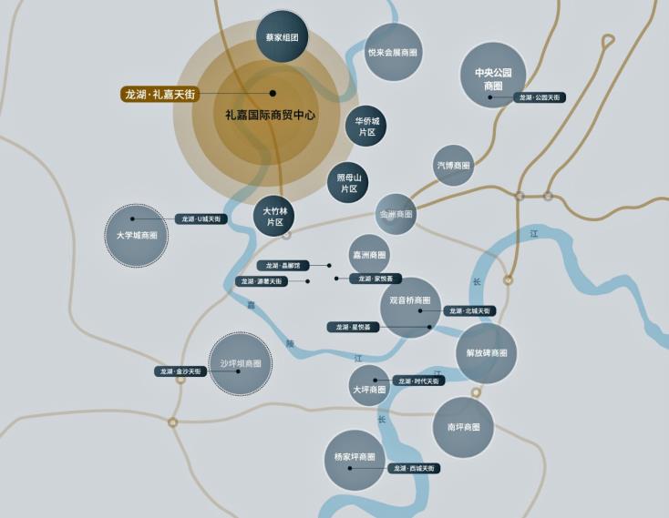 ▲龙湖重庆礼嘉天街项目周边产业分布示意图