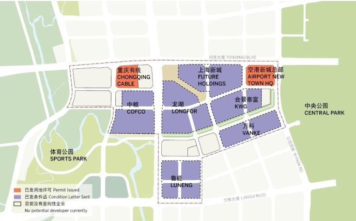 ▲两江国际商务中心各开发商拿地示意图