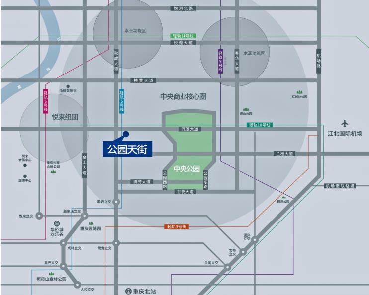 ▲龙湖重庆公园天街周边交通结构示意图