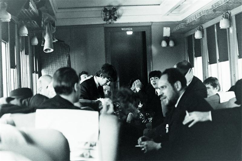 2.该照片拍摄后不久,Starr就加入披头士乐队。随着乐队知名度的提升,他们辗转在各地宣传作品。下图是在从纽约到华盛顿列车车厢里拍的。
