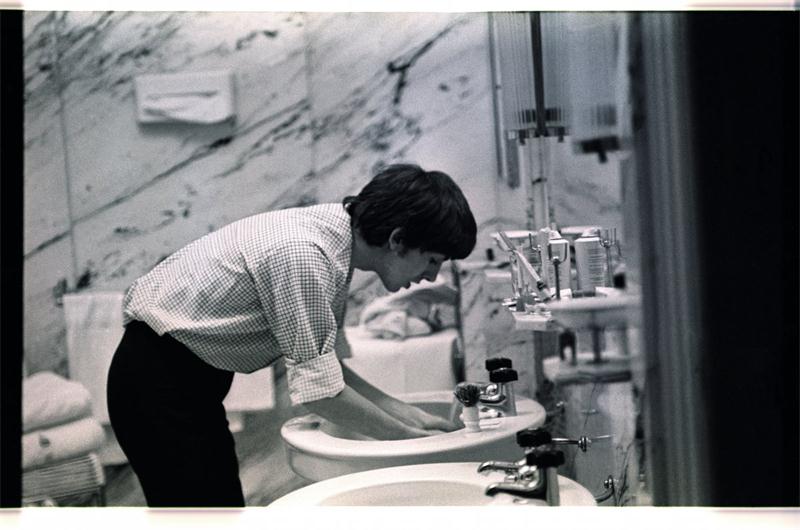 11.乔治被抓拍到正在洗脸。Starr透露,“当乔治在洗脸或者洗手时,从来都不会脱下衬衫。”