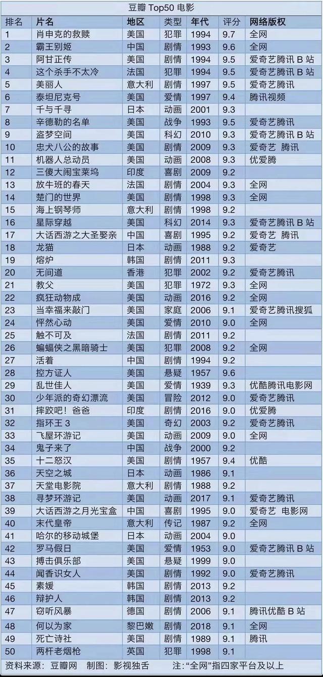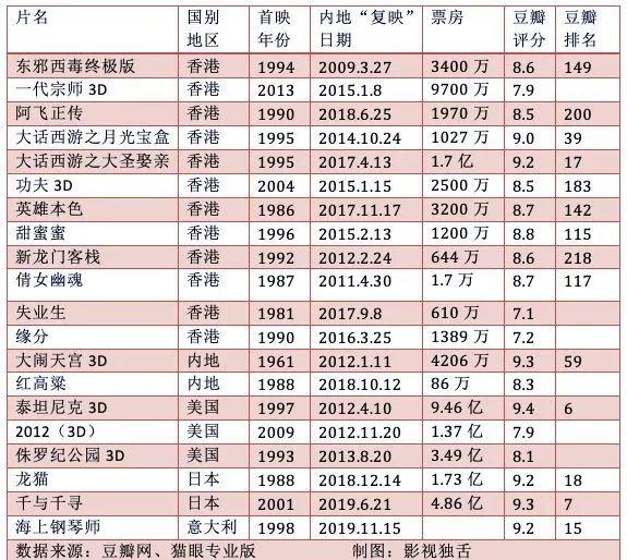 另外,豆瓣电影排行前50的国产老电影除了《大话西游》系列,《霸王别姬》《活着》《鬼子来了》三部有望冲击高票房的老电影在过审方面遥遥无期。