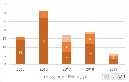 图2 2016-2019年养老行业投资细分领域(不完全统计)
