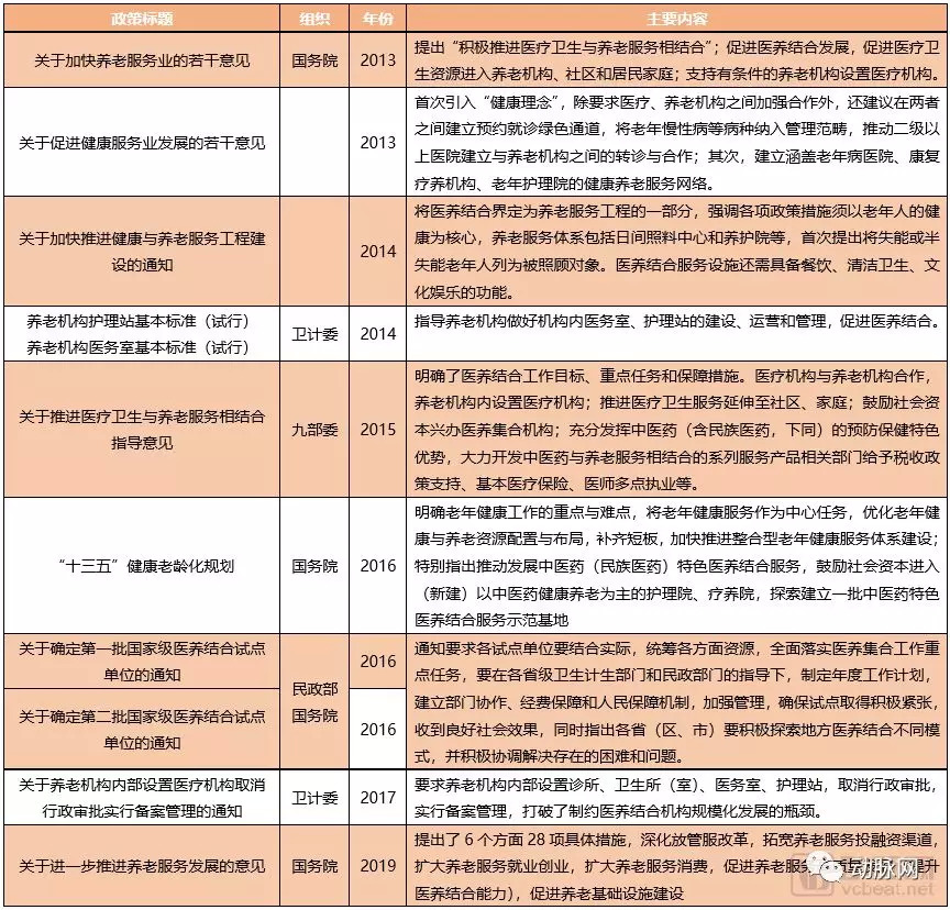 政策趋势放开医疗卫生行业和养老服务行业的部门行政管理,打破行业垄断;同时通过付费制度改革,探索建立长期照护保险制度等推动医养结合的发展。