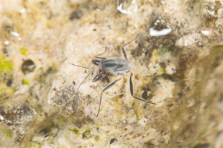 “我们发现,羚羊礁海蝽的体表上覆有浓密的拒水毛,当海水涨潮和水流经过时,这些拒水毛可以形成气泡,它们躲在气泡里生存,摄取氧气,抵御高潮位期间的海水环境。”谢强介绍说。