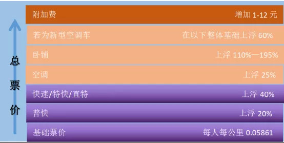 2. 结合火车不同坐席和空调情况,分别上浮25%—195%不等;