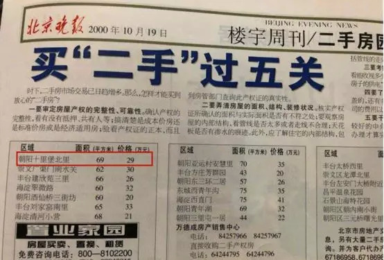 比如,北京朝阳十里堡北里小区的房子,2000年在《北京晚报》刊出的售价是29万。