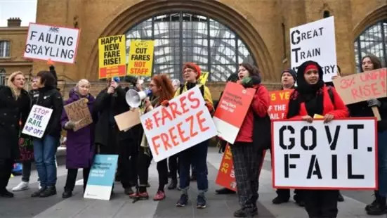 (英国上班族抗议火车票涨价)