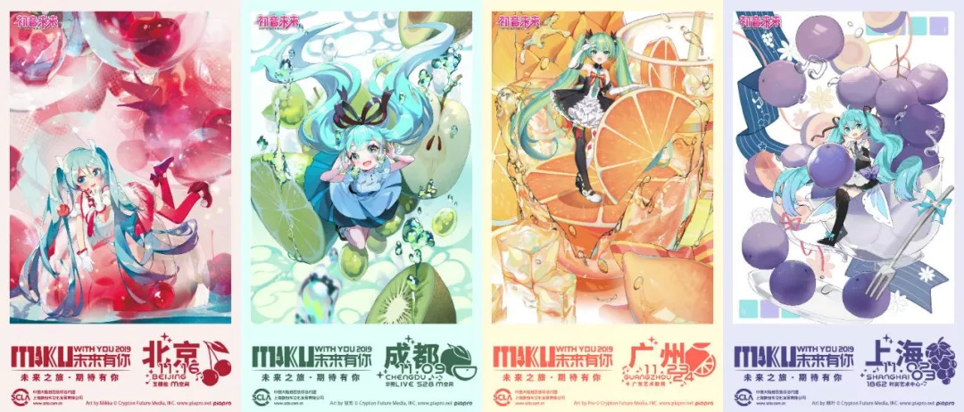 初音比较强势的是,虽然她有公式形象,但具体的形象是随创作者而千变万化的,粉丝们也习惯了她的形象变化。在各地巡演中,我们会尽量找当地作者来绘制主视觉图,曲目安排上有也几首歌用当地语言演唱。我们也尽量和当地人、当地的运营者与作者一起来开发初音的商品,让它们更符合本地粉丝的喜好。