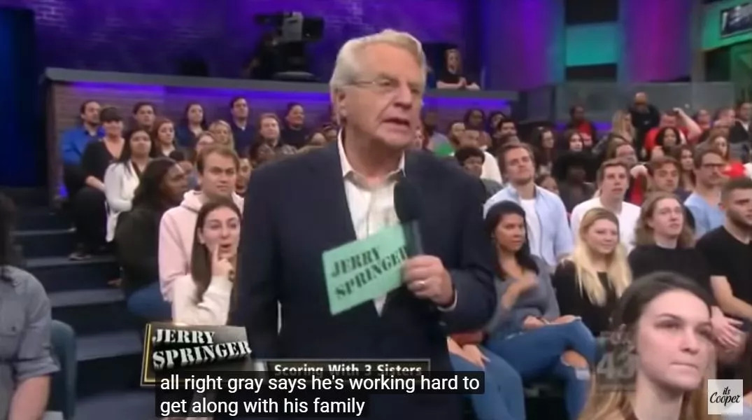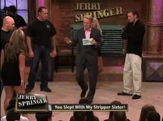 作为这个节目中,可能是唯一一个脑子清楚的人类,杰瑞·斯普林格是不是在利用观众的愚蠢,故意制造歧义打造收视神话,答案不言自明。