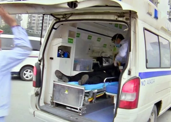 被抬上救护车时依然处于低血糖昏迷状态。