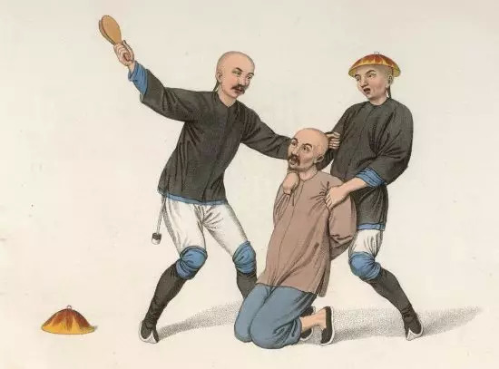 照面拍板,Pu Qua绘/《The punishments of China》,George Henry Mason 编著。