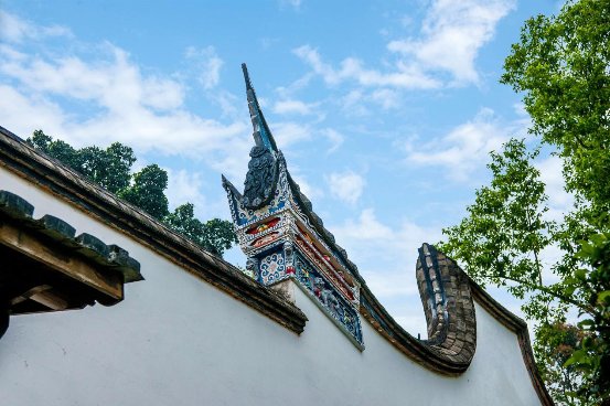 以苏州园林为例,园林墙是其必不可少的构件之一。在漏窗花墙、复廊隔墙、蜿蜒云墙、花形灯墙等运用方式下构建出园中有园,景中藏景的美妙。徽派建筑的马头墙则以高低错落的姿态和青砖黛瓦、斗拱、雕刻、照壁等相互映衬,相得益彰,构成了中国古民居的立体韵律。
