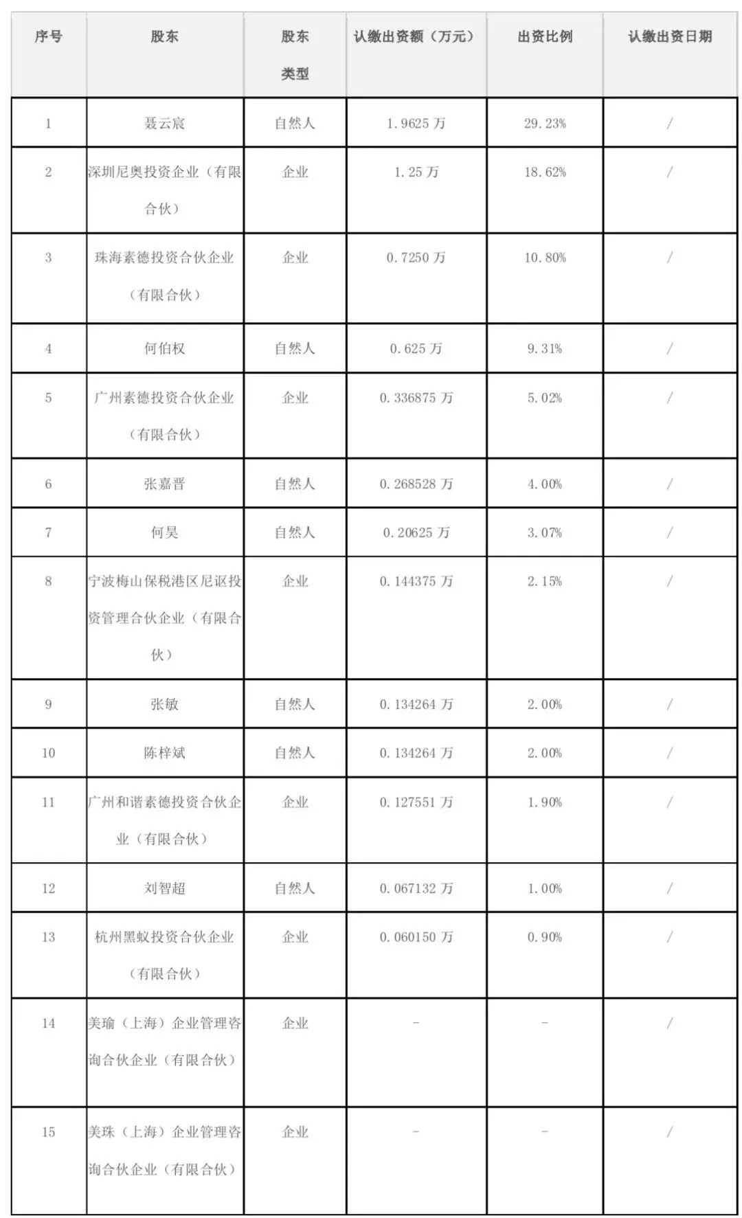 小食代查阅的企查查资料显示,其他原来在名单上的股东还有刘智超、何伯权等人,以及广州素德投资合伙企业(有限合伙)、杭州黑蚁投资合伙企业(有限合伙)、美珠(上海)企业管理咨询合伙企业(有限合伙)、美瑜(上海)企业管理咨询合伙企业(有限合伙)等多家公司。