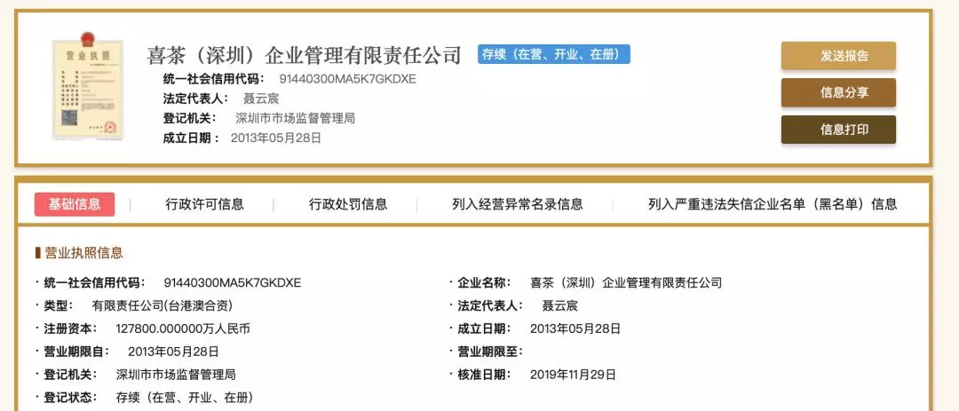 不过,喜茶在接受小食代查询时却明确地重申,“目前没有上市计划”。今天,喜茶在回复小食代问询时表示:“这是正常的工商变更,并不涉及到股权架构,目前也没有上市的计划。如果有更多信息再随时分享。”