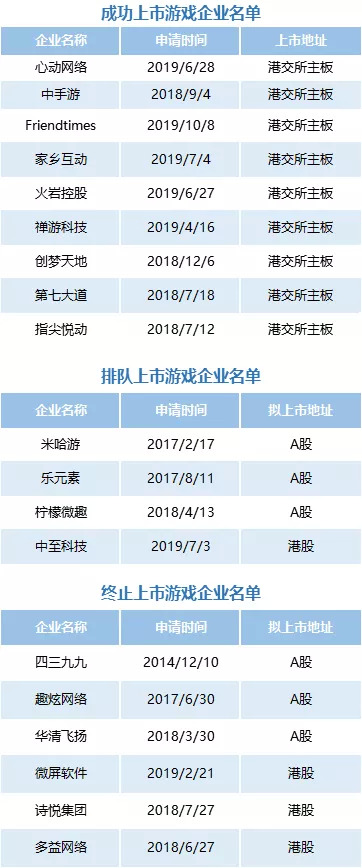 而据证监会公布的434家IPO排队企业名单显示(截至2019年10月17日),目前共有3家游戏公司仍在冲刺A股的道路上: