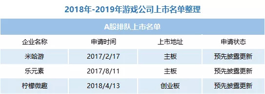 其中柠檬微趣选择于创业板上市,米哈游和乐元素则将目光锁定在门槛更高的主板市场;而四三九九、华清飞扬和趣炫网络的审核状态分别于2019年9月19日、8月13日和6月4日和变更为“终止审查”。