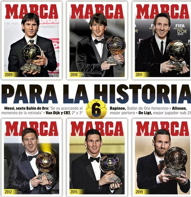 2019年12月2日,32岁的梅西又一次站上金球奖的领奖台,“今天,我获得了第6座金球,这样的时刻对我而言有了不一样的意义,我的妻子、三个儿子、兄弟和侄子们陪伴在我身边。”