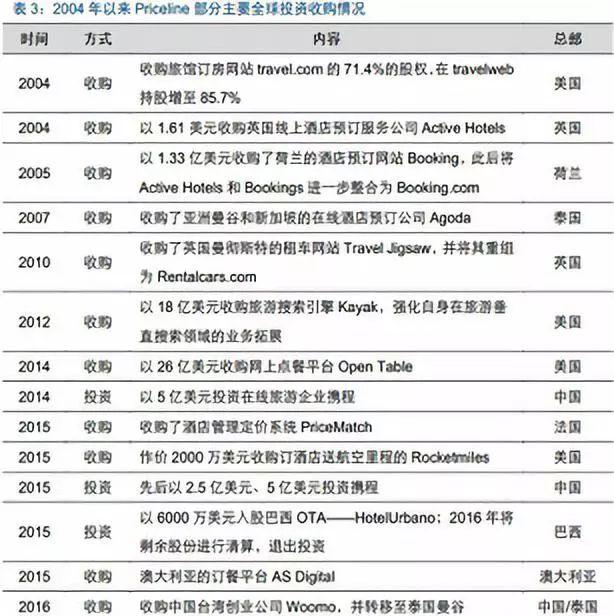 2004年以来Booking的主要全球投资收购情况 来源:长江证券研究所