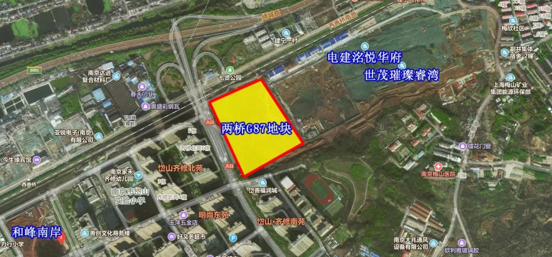 G87地块位于软件谷和南京市“铁心桥-西善桥”更新改造区,与河西南地区仅一河之隔。该地块紧邻岱山东路,距离在建的地铁7号线西善桥站直线距离不到800米,未来交通便捷。附近被安置房环绕,小区众多,虽不见大型商业配套,但也基本可以满足日常生活需求。