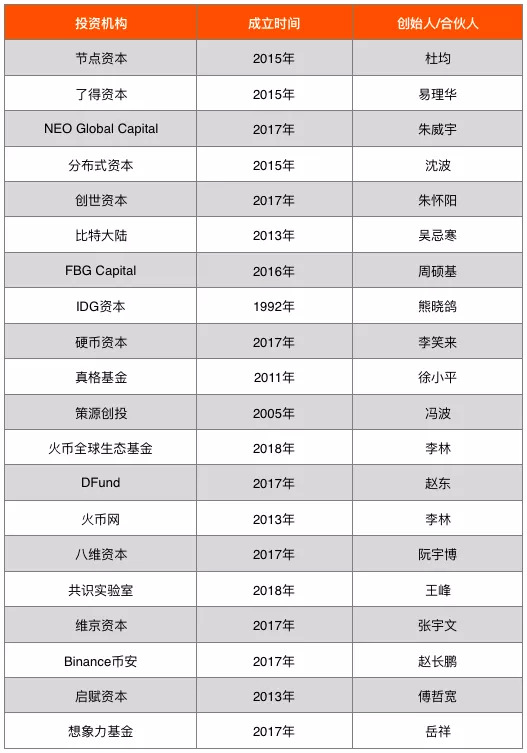 表1:中国区块链活跃投资机构20强(排名不分先后)