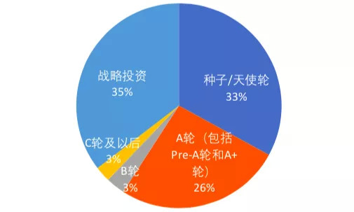 从轮次分布来看,大部分集中在战略投资、种子/天使轮和A轮。其中初创期(A轮及以前)投资轮次占比59%,反映出行业仍处于早期阶段,C轮及以后项目占比仅为3%。