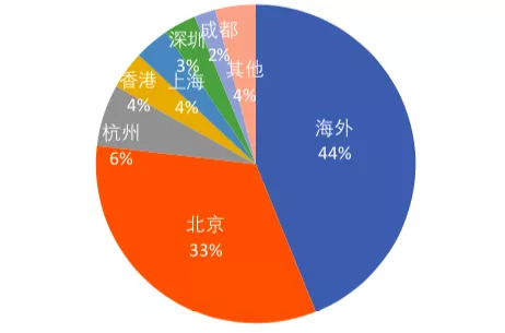 国内区块链投资项目以北京、杭州、上海、香港等地居多,国外项目标的以美国和新加坡等地项目占比较高。