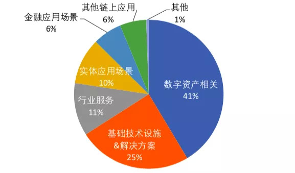 从行业分布来看,数字资产相关、基础技术设施&解决方案两大类占比66%,为最主要的两个类别。其中,数字资产相关最受欢迎,占比41%,金融和实体应用占比较少,说明投资机构更看重区块链相关中底层技术。