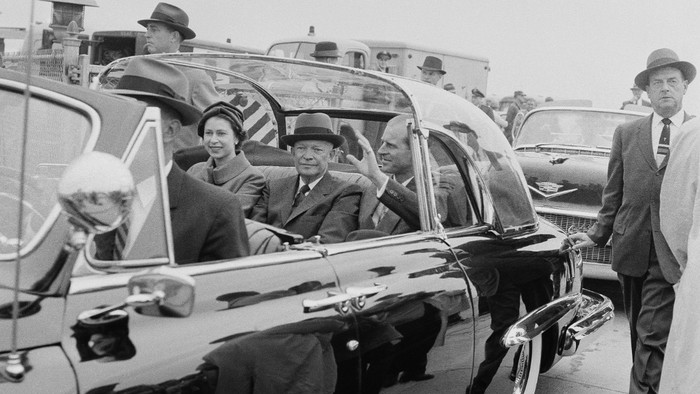 4. 德怀特•艾森豪威尔(Dwight Eisenhower) 在职时间:1953-1961 艾森豪威尔是女王在加冕后会见的第一位在职总统,也是他邀请女王1957年第一次到美国进行国事访问。两年后的1959年他们又在加拿大碰了一次面,作为英联邦的元首,女王代表加拿大欢迎艾森豪威尔访问该国,他们一起正式启用圣劳伦斯河航道,并乘坐皇家游艇体验。
