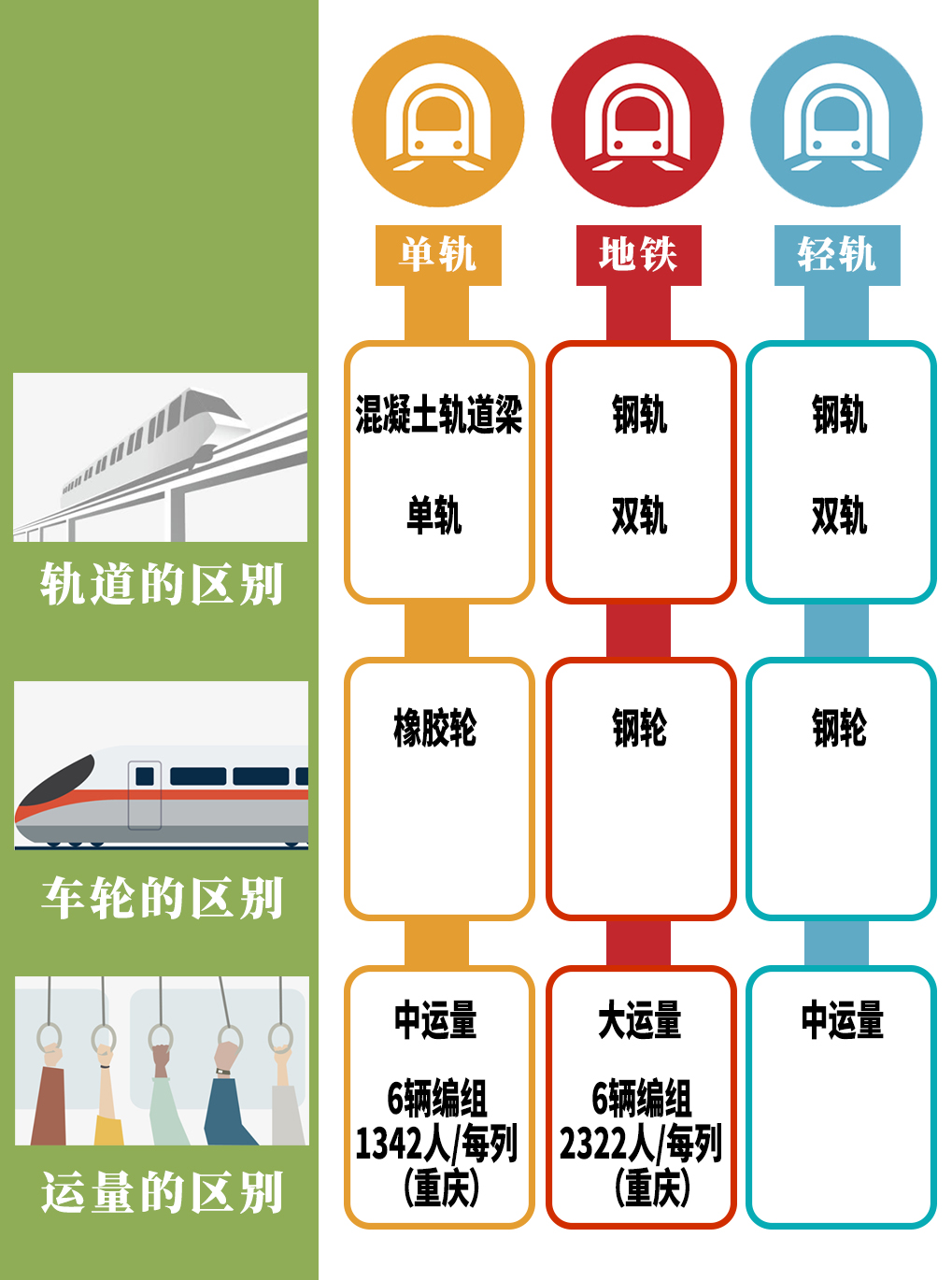 按照目前的行业规范,重庆只有单轨和地铁,没有“轻轨”。