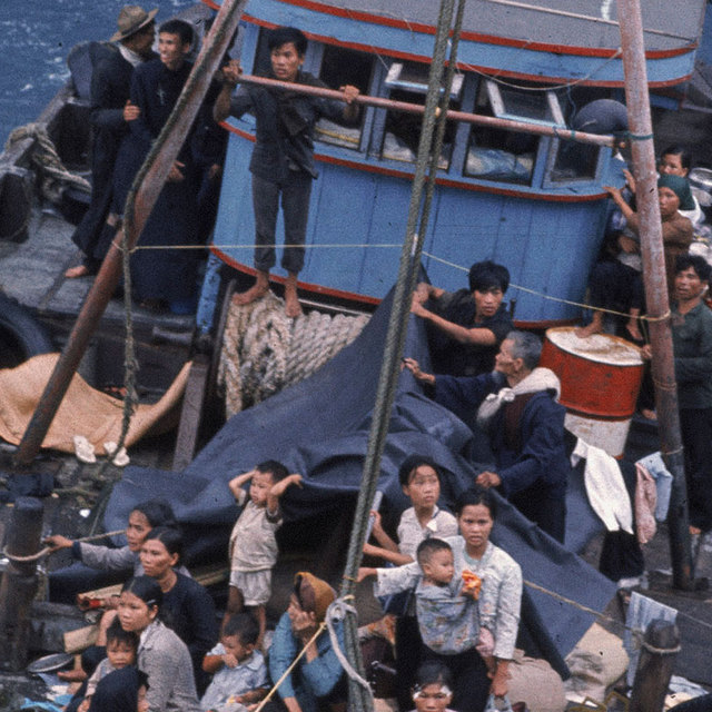 题图:1975年4月15日,西贡海面,难民乘坐小船。图片来自 Dirck Halstead/Getty Images/CFP。