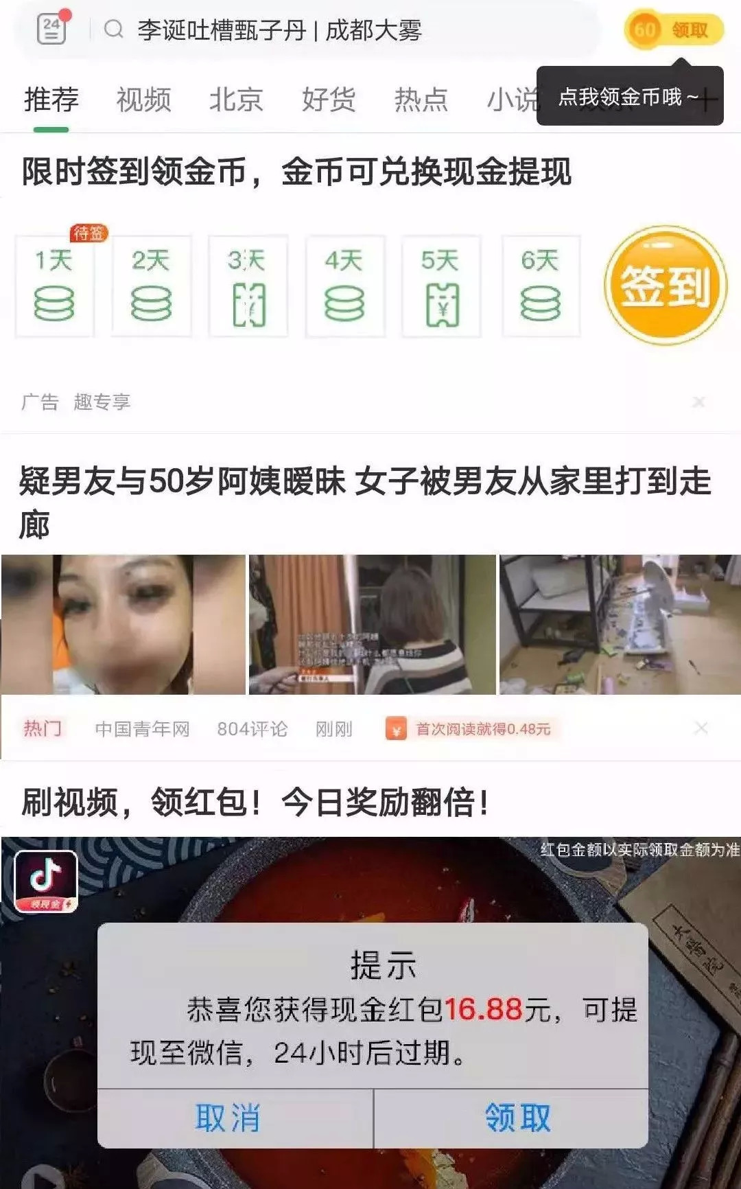 趣头条APP首页截图,图源趣头条APP