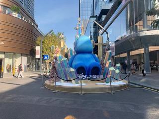 万象天地一街之隔有无数写字楼,早八点年轻人排队出地铁站,他们身后的优衣库、UA还未营业。推着婴儿车的老人家在万象天地的高街与广场闲逛。八点太早,水广场的抱抱象都还没营业。