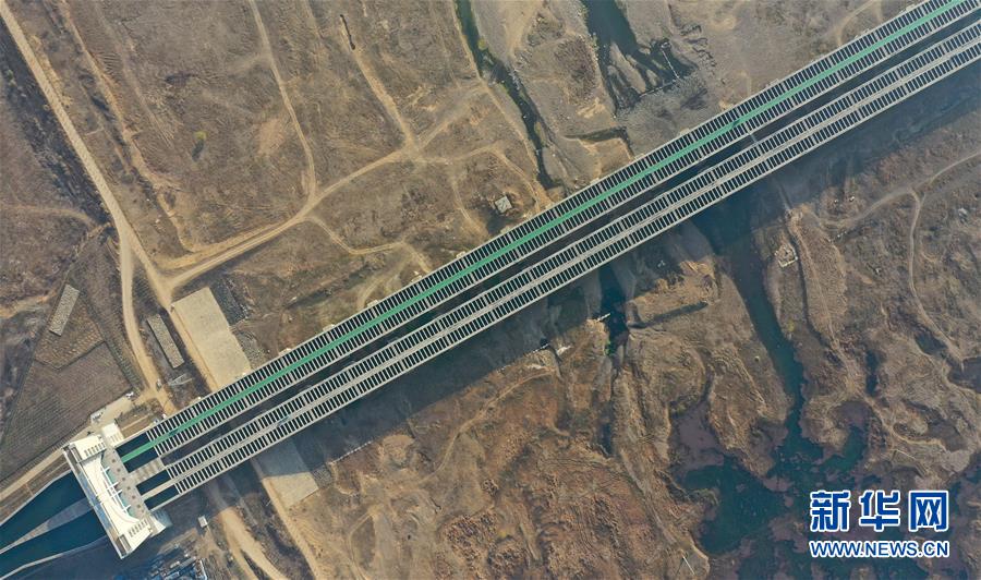 这是位于河南省鲁山县境内的南水北调中线总干渠沙河渡槽工程(12月9日无人机拍摄)。新华社记者 冯大鹏 摄