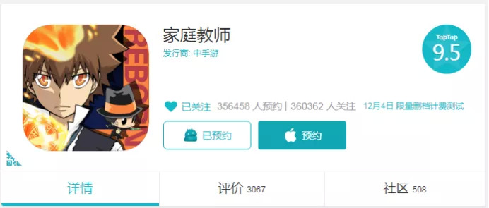 在业界越发重视口碑的当下,厂商们开始逐步行动起来。笔者发现,中手游旗下的《家庭教师》目前在粉丝口碑认可上已经有了一些苗头:其在付费测试结束后Taptap的评分仍保有9.5,相比测试前仅下降了0.1。测试结束后,其很快宣布了1月3日游戏全平台上线的时间,意味着测试版本基本就是上线后的版本内容。这种情况下还能有较为稳定的口碑,在今年的漫改手阵营中比较少见。