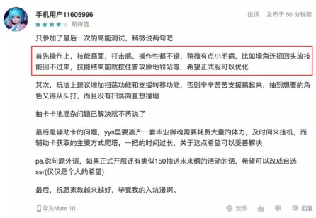 正如前面所说的,虽然有一些优点,但《家庭教师》并不完美。在像笔者这样动作手游经验丰富的玩家看来,《家庭教师》手游的操作手感在同类算不上顶级水平。同时IP自身拥有的大量女性用户,又对动作类手游的战斗模式存在一定上手困难——Taptap上总是有精英关过不去的评测留言。这一块的缺憾,其实也在调研中有所体现。