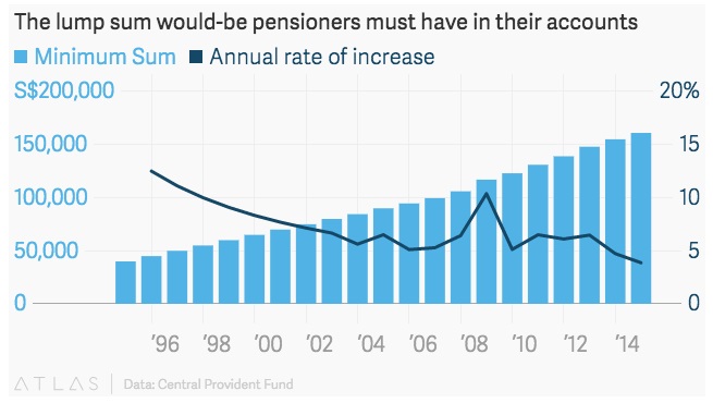 2015年,“最低存款”已达16.1万新加坡元。Gwynn Guilford写到,尽管这已是居民工资中位数的约3.5倍,但今年1月时,总理李显龙仍然在Facebook上的一次聊天中对国人说,这“并不算多”。