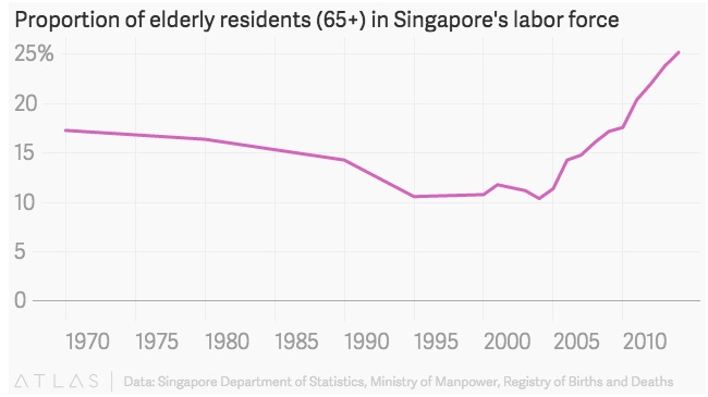为人们退休后的生活筹资,一直是新加坡面临的棘手问题。出生率下滑、人们的预期寿命变长,导致该国人口正以一个需要警惕的速度走向老龄化。联合国预计,2035年,将有近四分之一的新加坡人口年龄在65岁以上,而届时全球平均水平仅为13%。