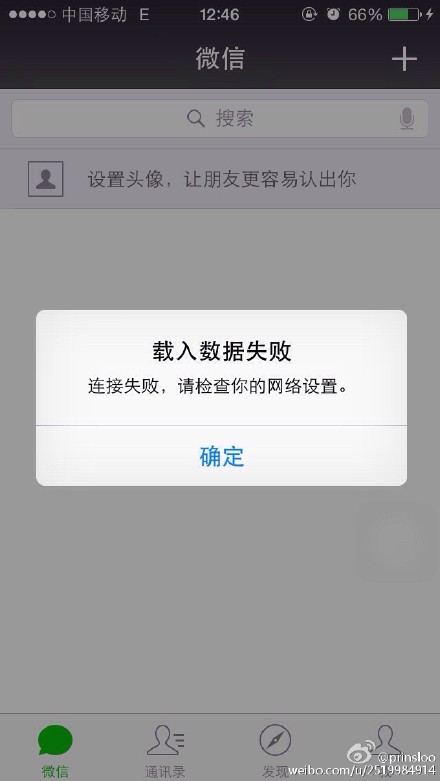 继昨天苹果官网出现问题后,今日微信也出现无法登陆的问题。在9月13日中午12点左右,有网友反映微信登陆出现问题,在载入99%的时候页面提示“载入数据失败,请检查你的网络设置”。