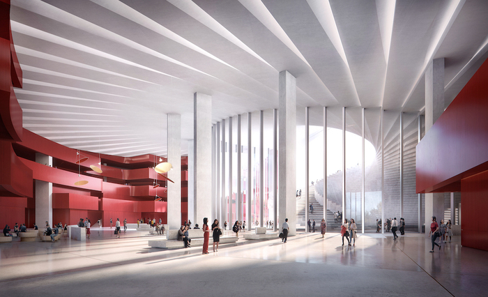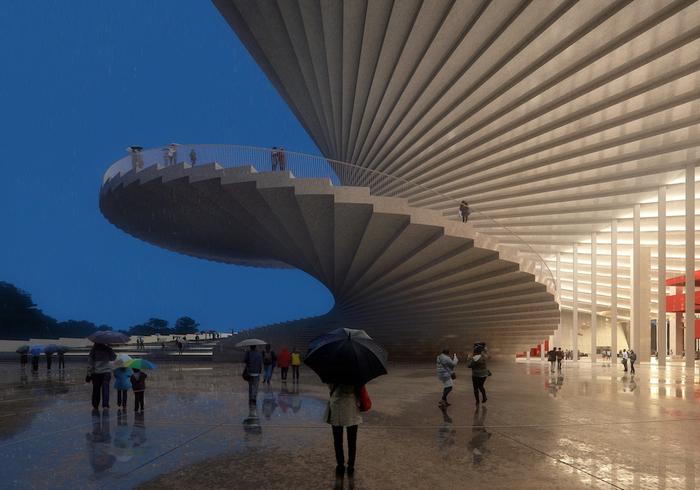 3. 动态的螺旋屋盖既是外观又是空间。外观上,上海大歌剧院连接大地和天空,立足于城市又面向城市,为人们创造出别样景致。同时螺旋屋盖也是面向公众的舞台,既能满足大型活动的使用需求,又能为市民或游客的日常参观提供乐趣。