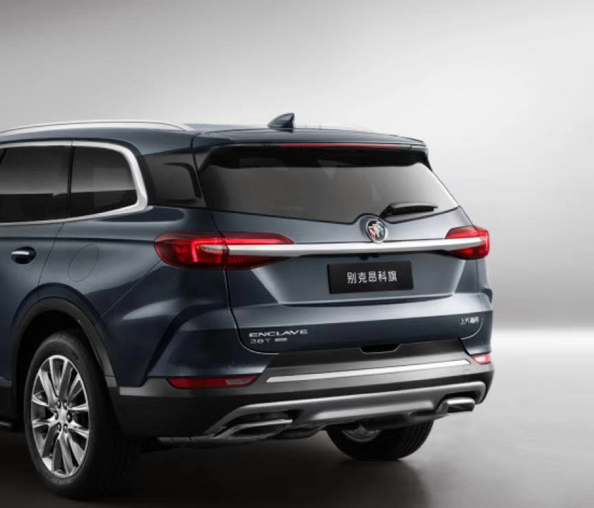 车尾展翼型的示廓灯和车头的日间行车灯形成呼应。这些都是一款豪华中大型 SUV 所具备的基础条件,但是要强调自身格局的话,还是得从细节入手,比如说感应式点多尾门上配备了一个别克 LOGO 照明灯。