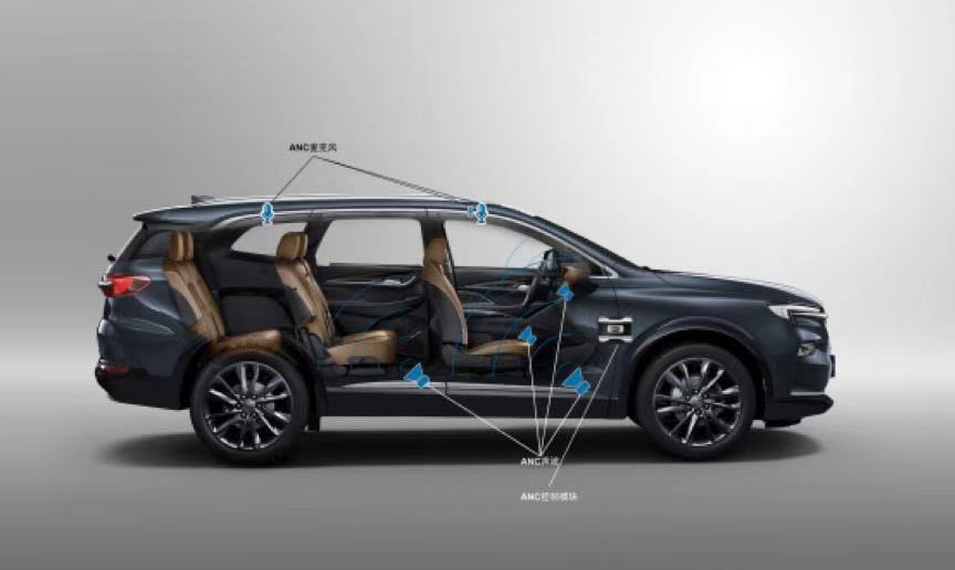 除了被动的隔绝和吸纳噪音,别克昂科旗还配备了新一代的 ANC 主动降噪系统,在车顶内隐藏了四个拾音麦克风来捕捉车内低频噪音,利用反向声波来进行主动降噪。别克昂科旗所配备的静音科技是别克 Quiet Tuning 的最高等级,从降、阻、吸到主动四个维度来消灭车内噪音,让昂科旗达到通用汽车最高等级的 Level A 静音体验。