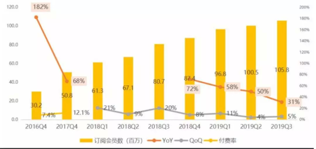虽然爱奇艺的会员数量仍在增长,但其会员板块的整体增长率却在明显下滑。