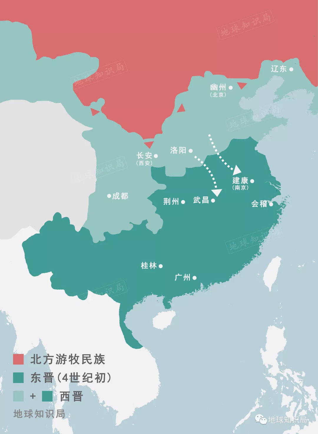 而到了晋元帝时期,第一次出现了“客”这个字来称呼从北方迁至南方的移民。这个字很微妙,一方面客是对拜访者的敬称;另一方面,客人始终做不了主,这一方山水并没有给他们带来真正的归属感,当战乱再起的时候,他们也会毫无留恋地离开,再次寻找新的家园。