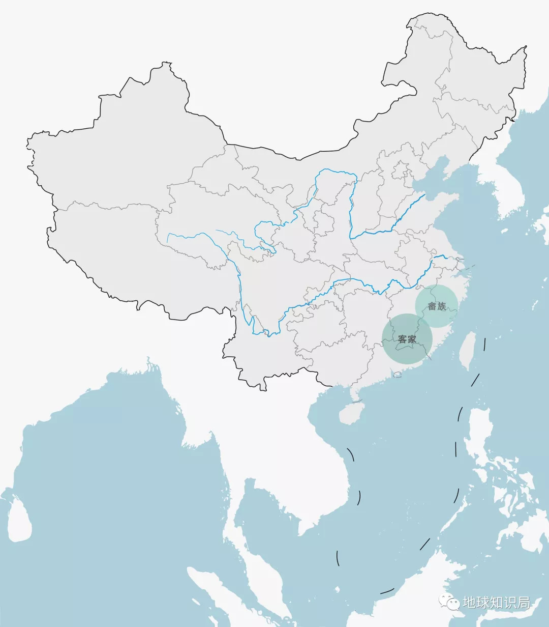 今天的客家人口主要聚居在福建省西北部、江西省南部、和广东省东北部。这里地域本来就狭小,更有分隔珠江水系和长江水系的五岭存在,所谓八山一水一分田,就是形容客家人居住的湘粤闽赣边地区。