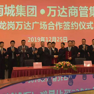 2019年12月25日下午,华南城集团与万达商管集团在深圳华南城总部大楼举行深圳龙岗万达广场项目合作协议签约仪式。万达集团总裁助理沈景琰、华南城集团董事局主席郑松兴、华南城集团总裁赵立东等出席本次签约,深圳市龙岗区工业和信息化局副局长孙恺鹏、平湖街道党工委书记张志华、街道办主任刘庆等领导和嘉宾进行了见证。