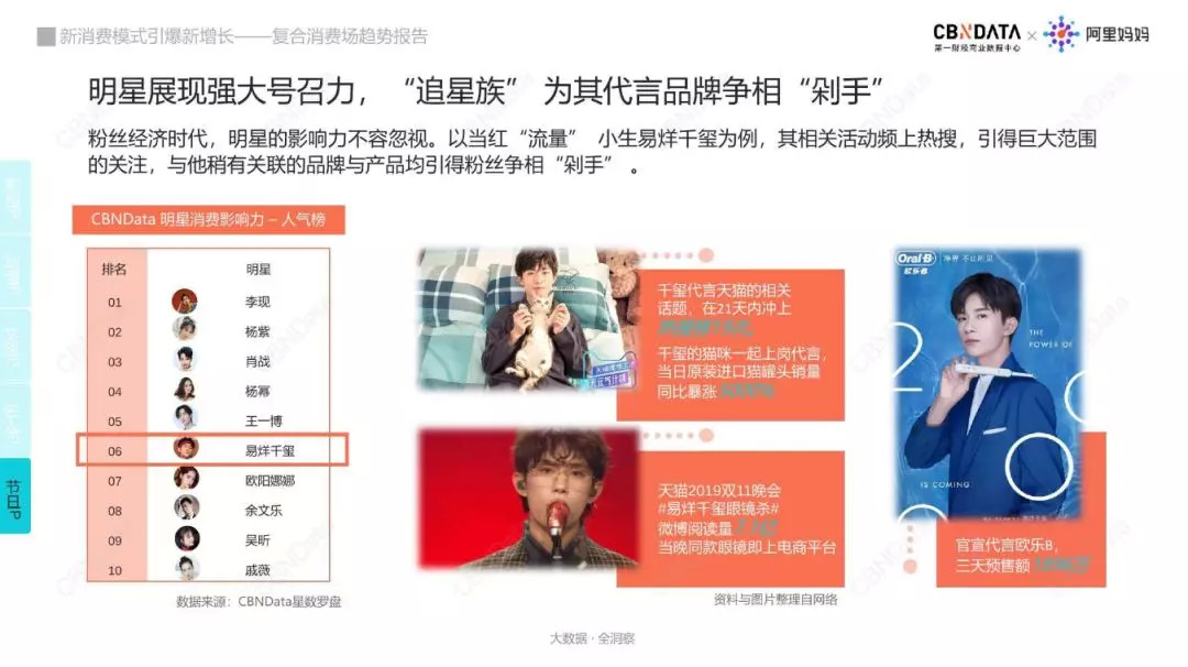 粉丝经济时代,除了明星不容小觑的影响力之外,应运“直播”而生的网红达人亦是不可忽视的“带货”IP。如以“薇娅”与“李佳琦”为代表的网红类IP,他们超强的带货力不断刷新着记录;而当红“流量”小生中以易烊千玺为例,其相关活动频上热搜,引得巨大范围的关注,与他稍有关联的品牌与产品均引得粉丝争相“剁手” 。