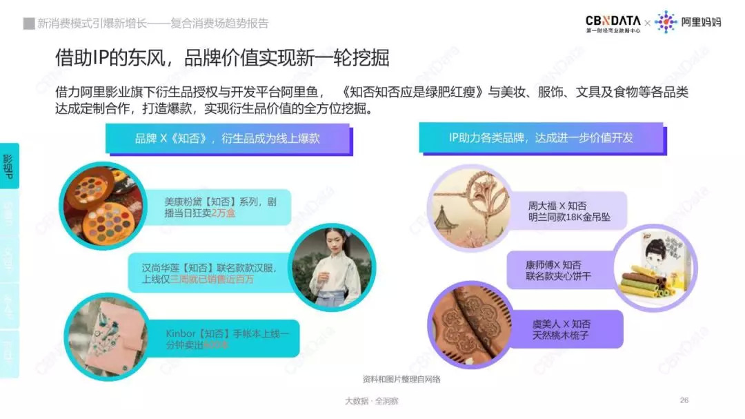 IP价值这么重要,那如何实现IP价值的深度变现?对此CBNData和阿里妈妈经过深度探索后,依托阿里巴巴丰富的生态资源,以及独特的数据技术能力,携手打造“IP消费影响力榜单”,以协助品牌甄选合适的IP。