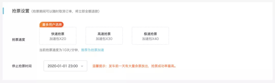 其中,车票开售时抢票是大部分用户最常遇到的情形。而在大量用户涌入时,决定能否抢到票的因素有两个——网速和手速,这也成为加速包的发力点。