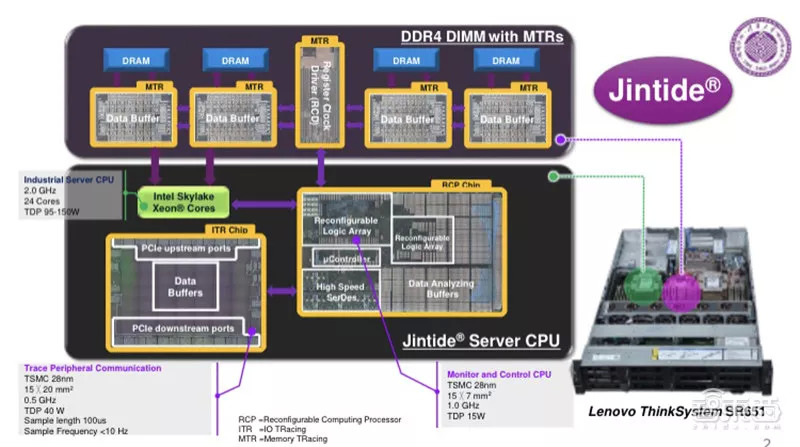 此外,魏少军、刘雷波团队和中国电子旗下的澜起科技已将这一技术用于新型X86架构CPU的研发,并于2018年7月研制成功了津逮高性能服务器CPU芯片,据称是全球第一款用第三方的硅模块来动态监控处理器内核硬件安全状况的商用CPU芯片。